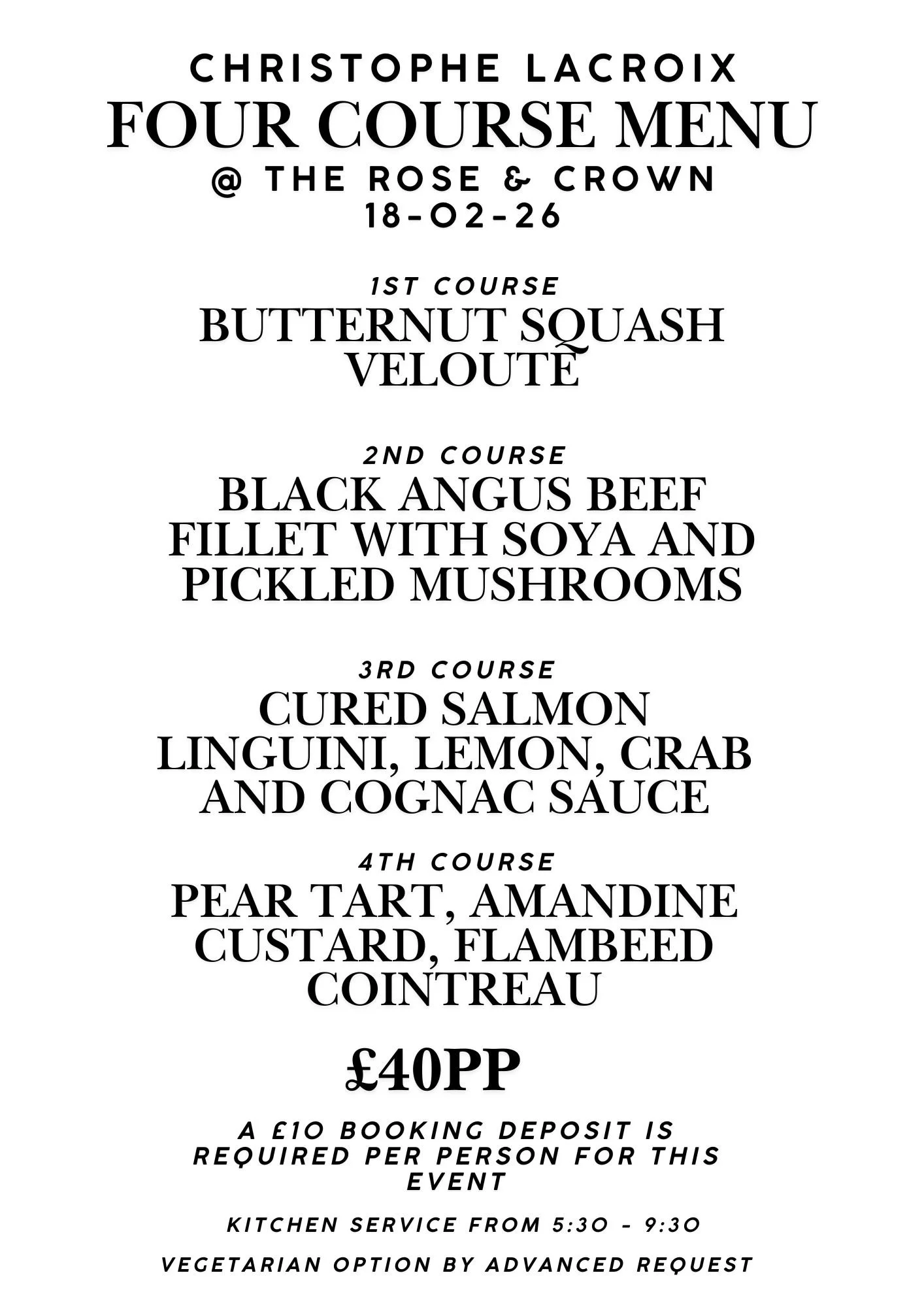 Christopher will be serving an elegant four-course menu, showcasing beautifully balanced flavours and classic technique with a modern edge: